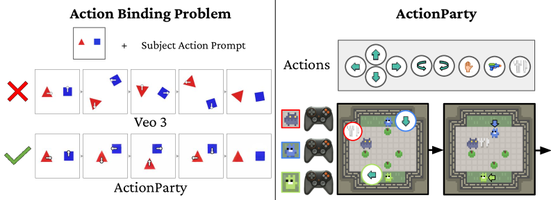 - Multi-Agent Control: ActionParty demonstrated the first video world model capable of controlling up to seven players simultaneously across 46 diverse environments. This is a significant leap beyond previous single-agent or loosely controlled multi-agent systems.