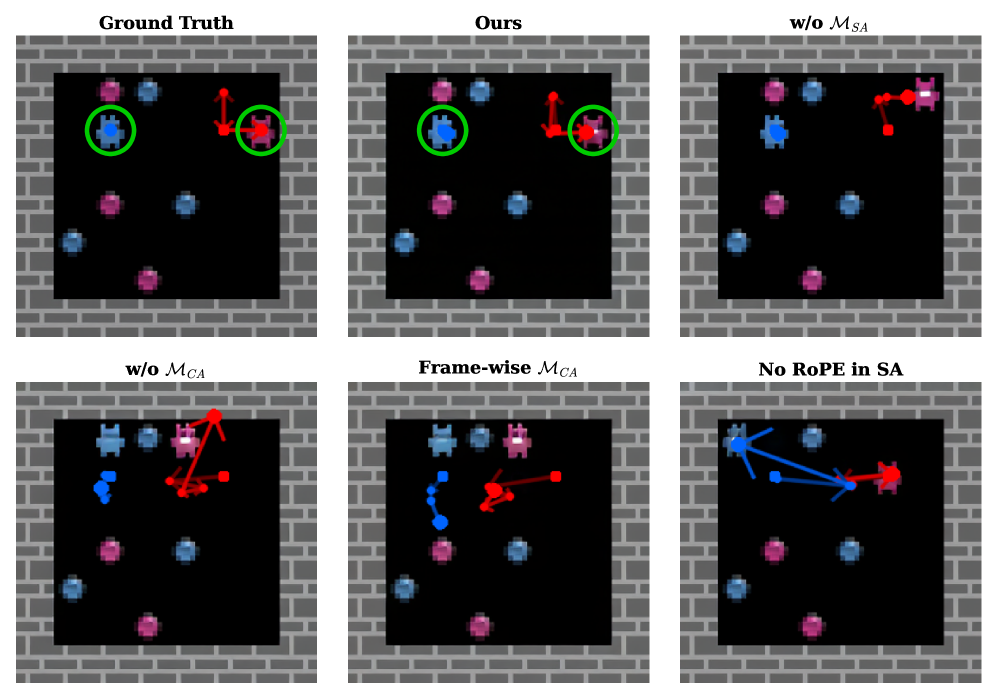 Figure 8: Ablation studies confirm the necessity of ActionParty's introduced components for successful multi-character control.