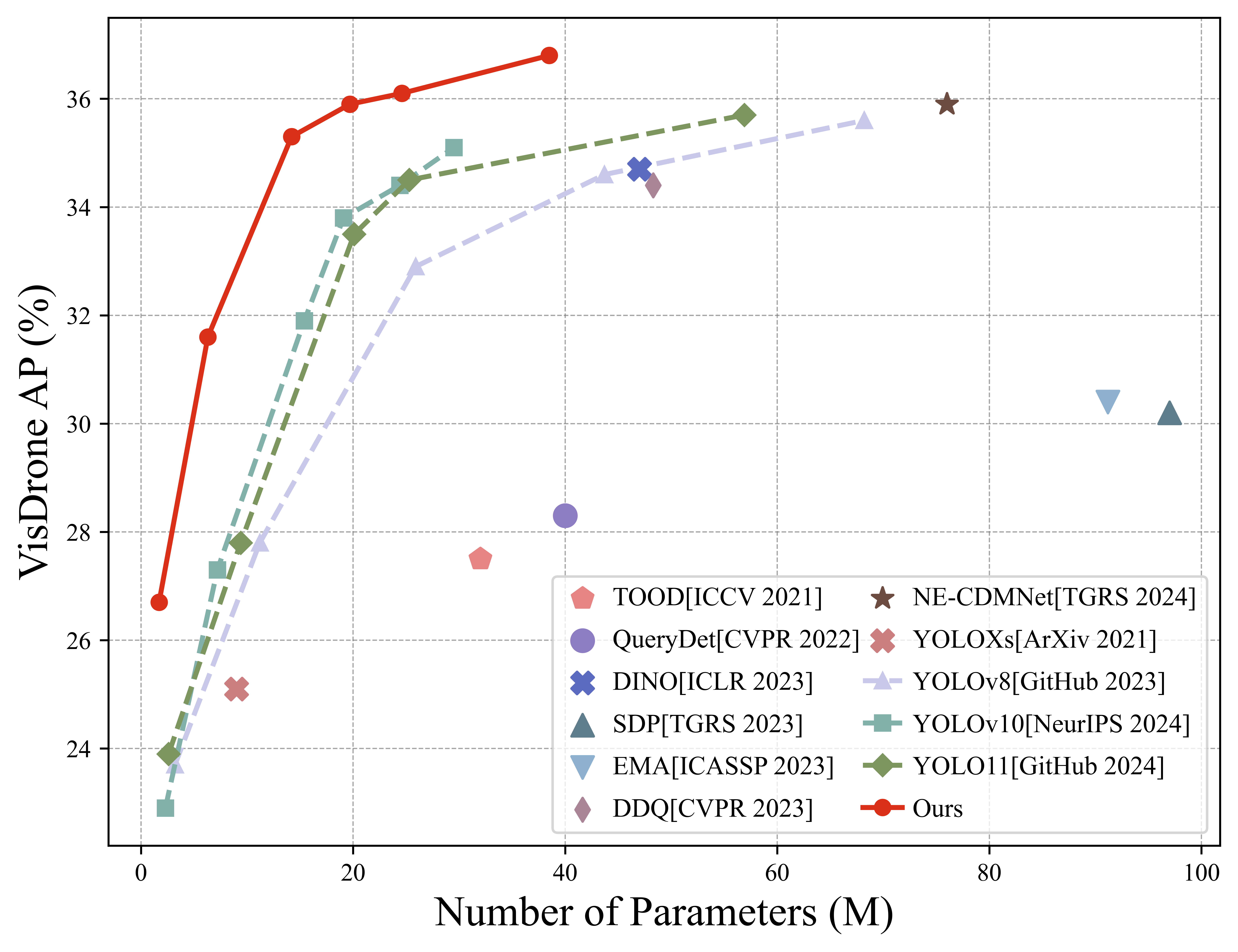 SFFNetisn't a one-size-fits-all solution. The authors designed six different scale detectors (N/S/M/B/L/X), allowing developers to choose between high accuracy (SFFNet-X) or lightweight efficiency (SFFNet-N/S) depending on their drone's hardware constraints and mission requirements. The lightweightSFFNet-NandSmodels maintain a strong balance between accuracy and computational footprint, which is crucial for edge devices.