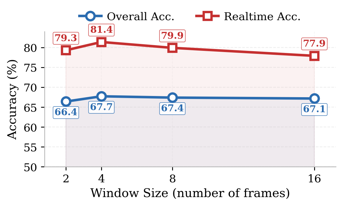 They tested various window sizes (number of recent frames) and found a sweet spot. For many models, 4 frames provided the optimal balance for real-time accuracy, with performance often declining if the window became too wide.