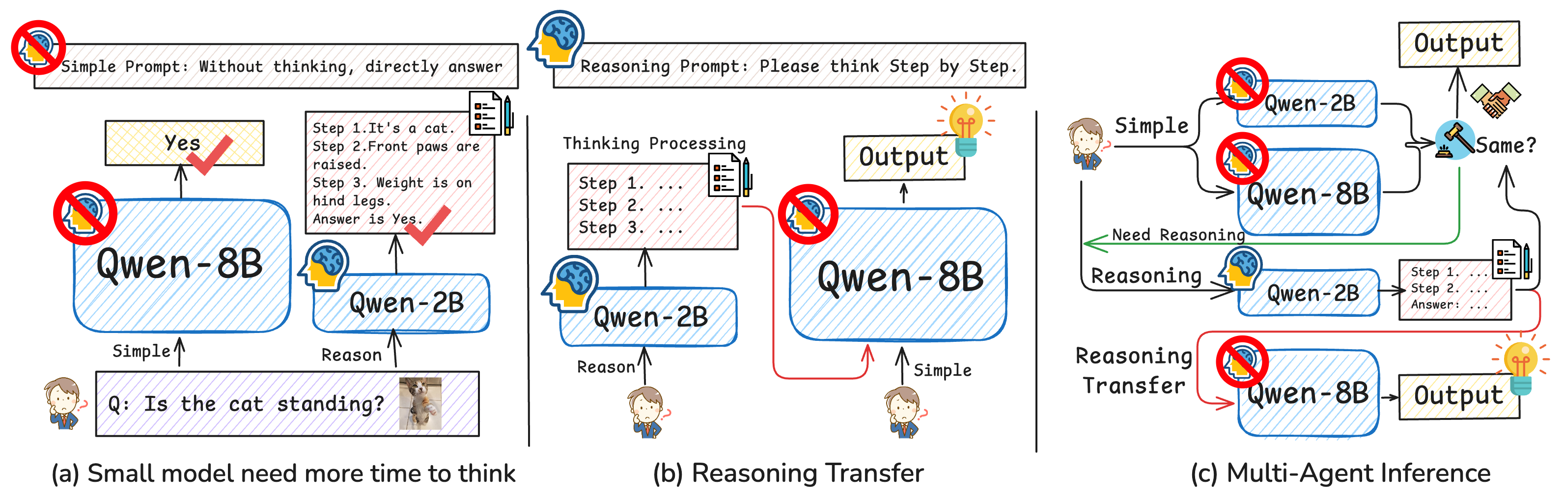 Illustration of the multi-agent inference strategy: reasoning is split between models for efficiency.