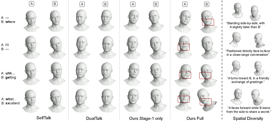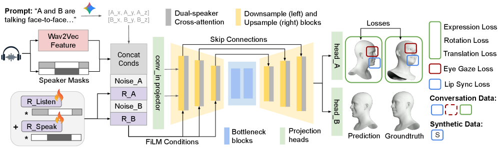 - Eye Gaze Loss: A specialized loss function ensures natural eye contact dynamics during conversational shifts.