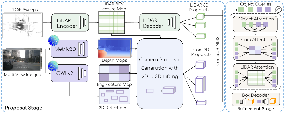 Attention-Based Refinement: Once initial 3D proposals are generated from both LiDAR and the vision foundation models, the system refines them. This stage employs an attention mechanism that particularly emphasizes the rich image features derived from