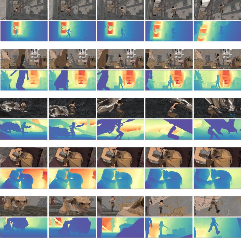 Figure 4: More qualitative results on the Sintel video depth, illustrating the model's consistent performance across various scenes.