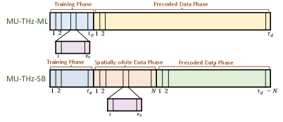 Figure 2: Frame structures of THz ML and SB channel estimation schemes